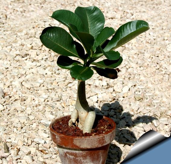 A Rosa do Deserto, também chamada de Adenium, é uma planta de origem africana. Incomum por conta de suas formas, seu caule é espesso e moldável conforme seu crescimento. Possui folhas verdes brilhantes e produz lindas flores exóticas e coloridas.